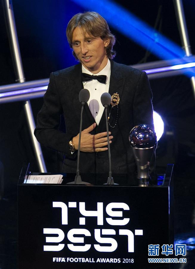 图为莫德里奇在当选2018年度“世界足球先生”后发表获奖感言(2018年9月24日摄)。 新华社记者韩岩摄