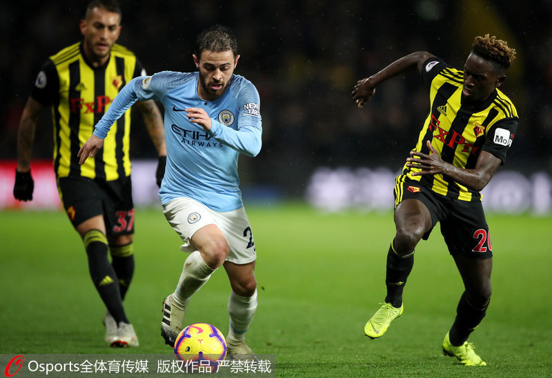 人民网北京12月5日电(杨磊) 北京时间12月5日凌晨,2018/19赛季英超第15轮继续进行,曼城客场2比1力克沃特福德,萨内进球,马赫雷斯传射,杜库雷扳回一城。曼城联赛7连胜后继续领跑。
