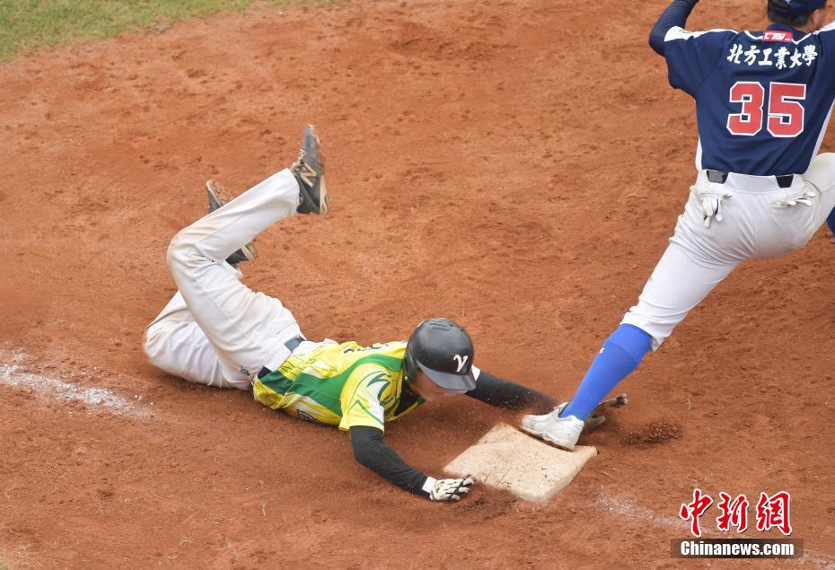 12月5日,第二届海峡两岸学生棒球联赛总决赛在深圳中山公园棒球场落幕。在大学甲组决赛中,北方工业大学(蓝队)以3比2胜万能科大(黄队)夺得冠军。中新社记者 陈文 摄