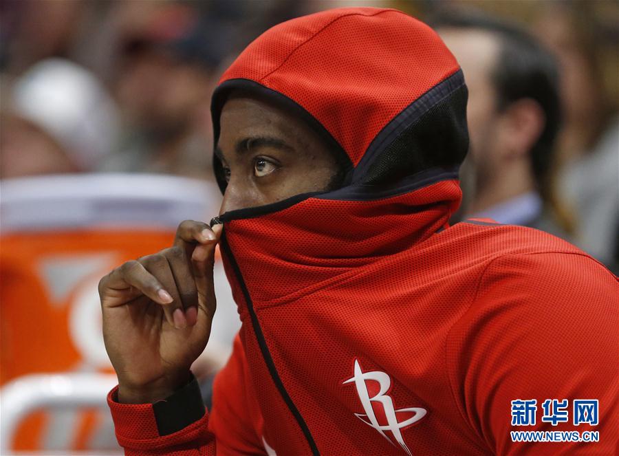 火箭队球员哈登在场边观看比赛。新华社/美联