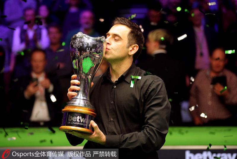 奥沙利文亲吻奖杯