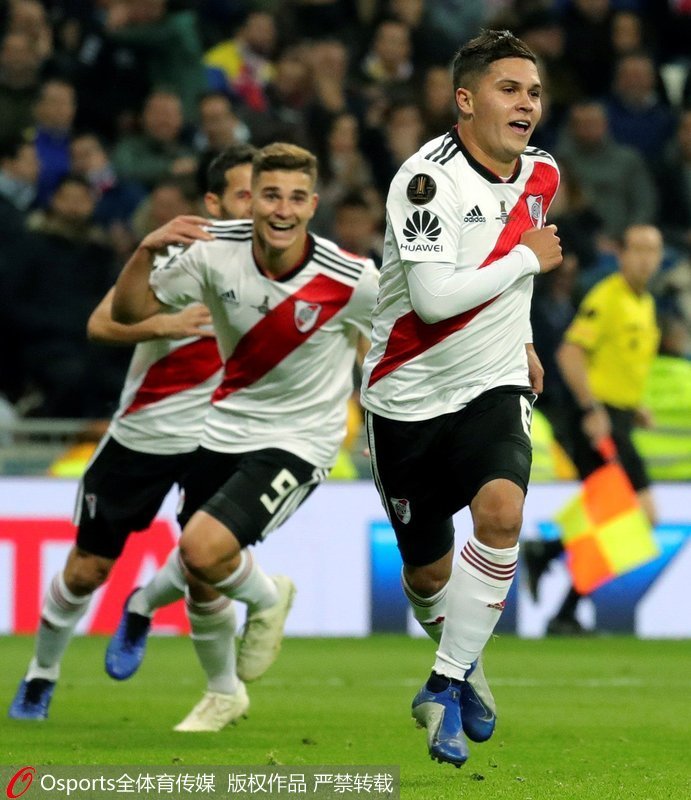第108分钟,马亚达横敲,金特罗打出世界波得分,河床2-1领先。第120分钟,哈拉抽射攻门被防守球员碰了一下后击中球门柱弹出。