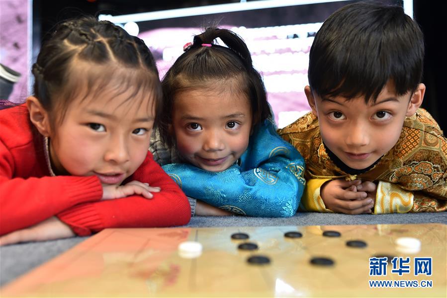 12月9日,爱好藏棋的孩子们与棋盘合影。 近日,西藏自治区藏棋协会在拉萨举办藏棋比赛与普及活动,来自二十多所中小学的130多名学生报名参加。 新华社记者觉果摄