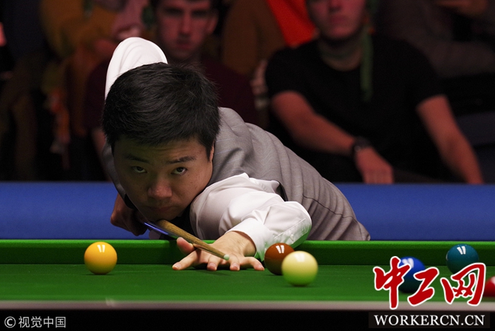 2018年12月11日,英国格拉斯哥,Emirates Arena。2018斯诺克苏格兰公开赛首轮,中国选手丁俊晖以4比0战胜中国选手牛壮,晋级64强。