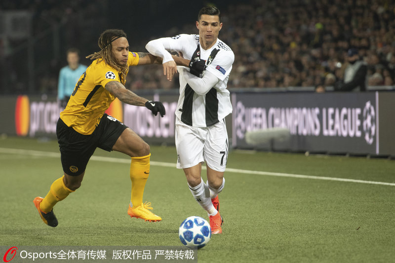 人民网北京12月13日电(杨磊) 北京时间12月13日凌晨,欧冠小组赛H组开始最后一轮争夺,尤文图斯客场1比2负于垫底的年轻人,但由于曼联也在客场告负,尤文12分获得头名。阿莱士-桑德罗送点。瓦罗梅开二度。C罗助攻替补出场的迪巴拉破门,此后还顶中立柱。