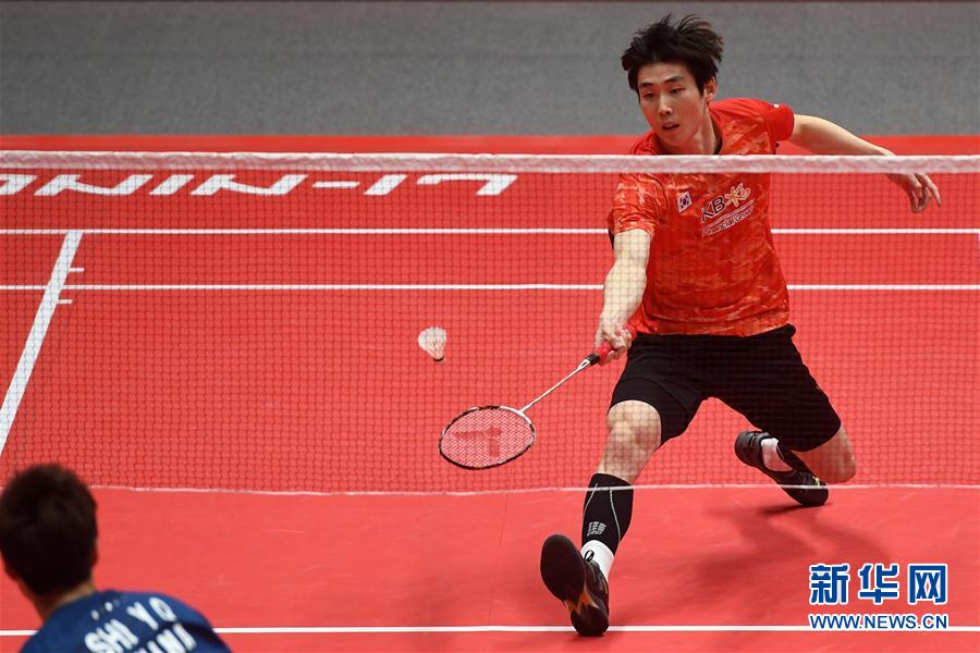 韩国选手孙完虎(右)在比赛中回球。新华社记者李俊东摄