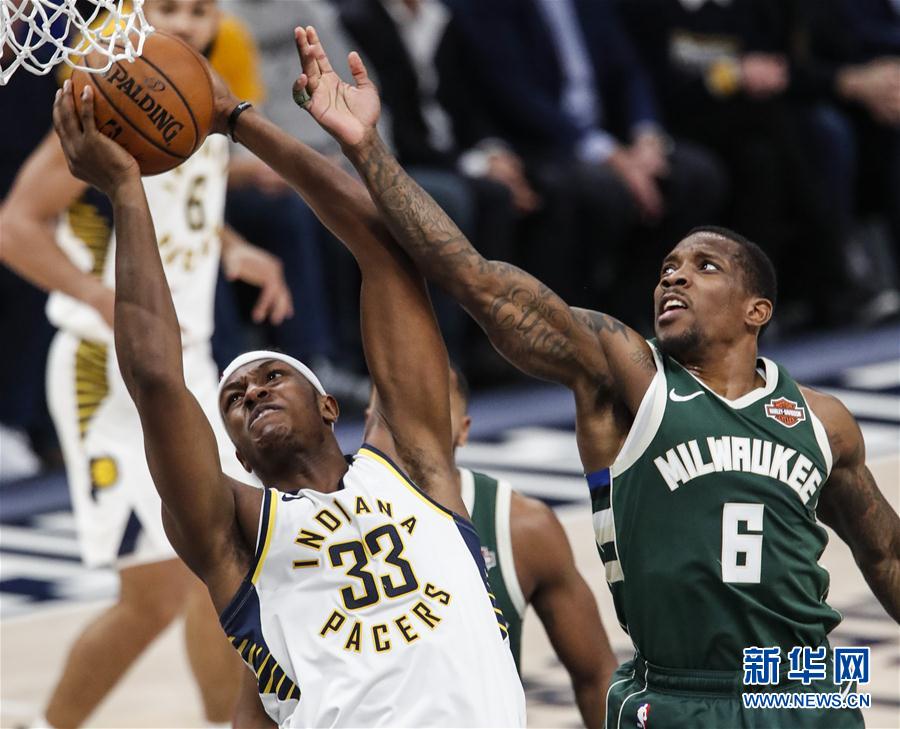12月12日,步行者队球员特纳(左)在比赛中进攻。 当日,在2018-2019赛季NBA常规赛中,印第安纳步行者队主场以113比97战胜密尔沃基雄鹿队。 新华社发