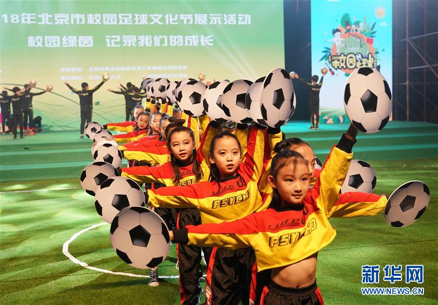 学生们在进行足球拉拉操展示。 新华社记者孟永民摄