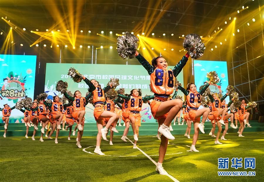 学生们在进行足球拉拉操展示。新华社记者孟永民摄