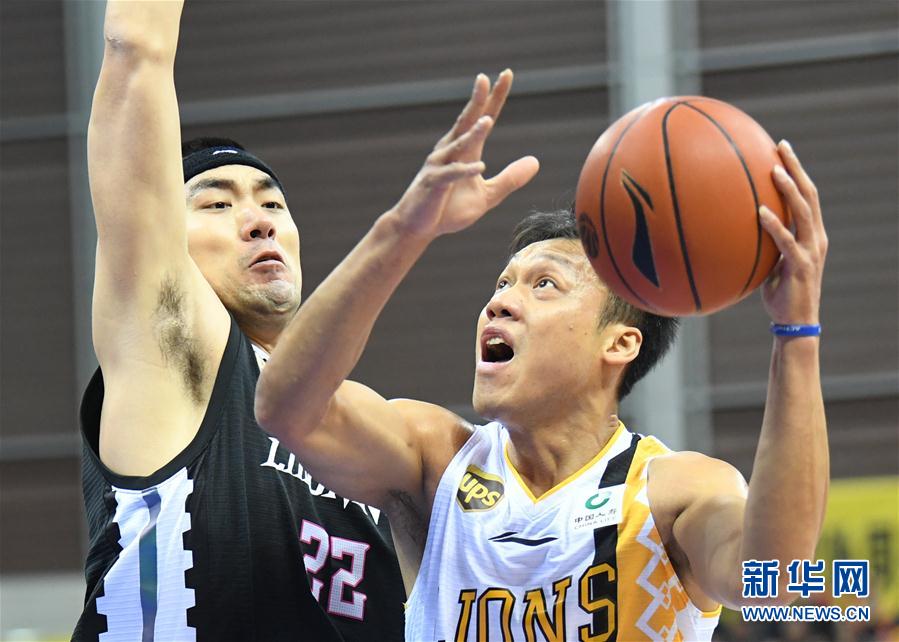 12月13日,浙江广厦控股队球员林志杰(右)在比赛中投篮。 当日,在2018-2019赛季中国男子篮球职业联赛(CBA)常规赛第19轮比赛中,浙江广厦控股队主场以95比100不敌辽宁本钢队。 新华社记者翁忻旸摄