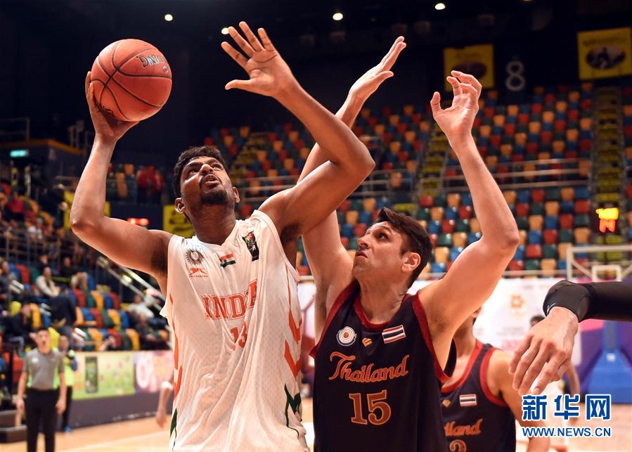 印度队球员潘迪(左)在比赛中投篮。 新华社记者卢炳辉摄