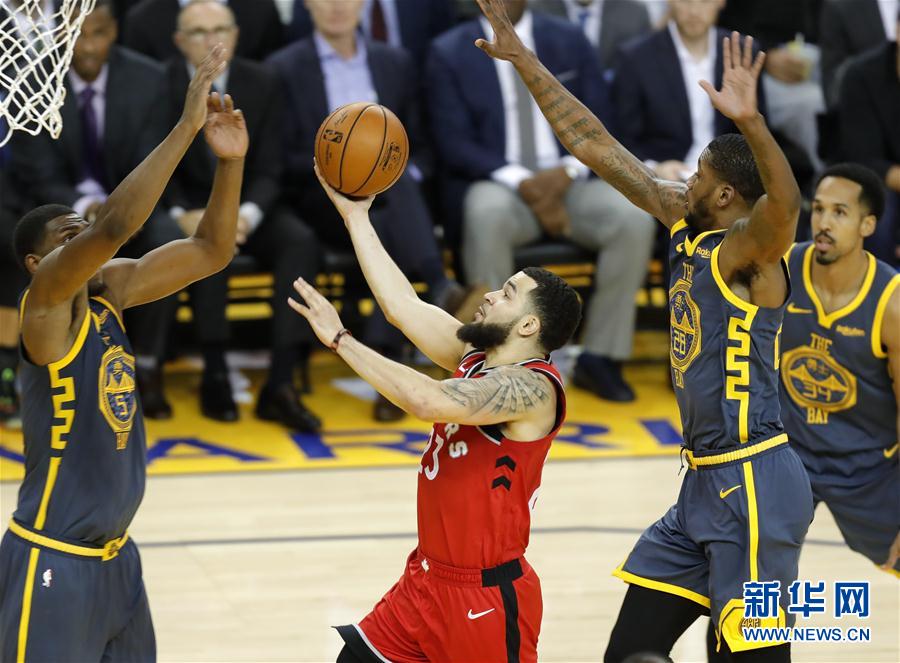 12月12日,猛龙队球员范弗里特(左二)在比赛中上篮。 当日,在2018-2019赛季NBA常规赛中,金州勇士队主场以93比113不敌多伦多猛龙队。 新华社发