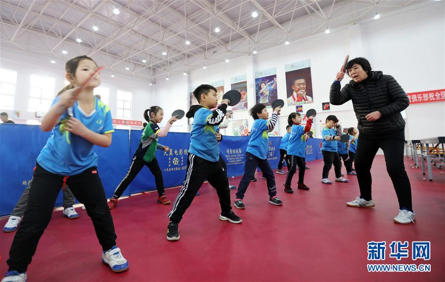 12月13日,衡水市新苑小学乒乓球教练为学生讲解基本技术动作。 河北省衡水市新苑小学把推进乒乓球进校园活动作为提高学生素质和培养乒乓球运动人才的重要举措,让孩子们充分享受乒乓球运动的快乐。 新华社记者朱旭东摄