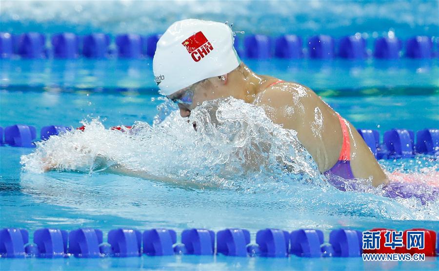 12月14日,中国选手史婧琳在预赛中。 当日,在浙江杭州举行的2018年国际泳联世界短池游泳锦标赛女子100米蛙泳预赛中,中国选手史婧琳以1分05秒24的成绩位列第五,晋级半决赛。 新华社记者王丽莉摄