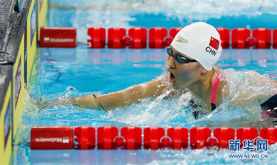 12月14日,中国选手于静瑶在预赛中。 当日,在浙江杭州举行的2018年国际泳联世界短池游泳锦标赛女子100米蛙泳预赛中,中国选手于静瑶以1分05秒55的成绩位列第九,晋级半决赛。 新华社记者王丽莉摄