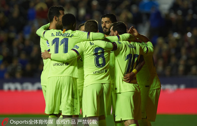 人民网北京12月17日电(杨磊) 北京时间12月17日凌晨,2018/19赛季西甲第16轮继续进行,巴塞罗那客场5比0大胜莱万特,梅西助攻苏亚雷斯进球后完成帽子戏法,又助攻皮克锦上添花。巴萨联赛3连胜后仍以3分领跑。
