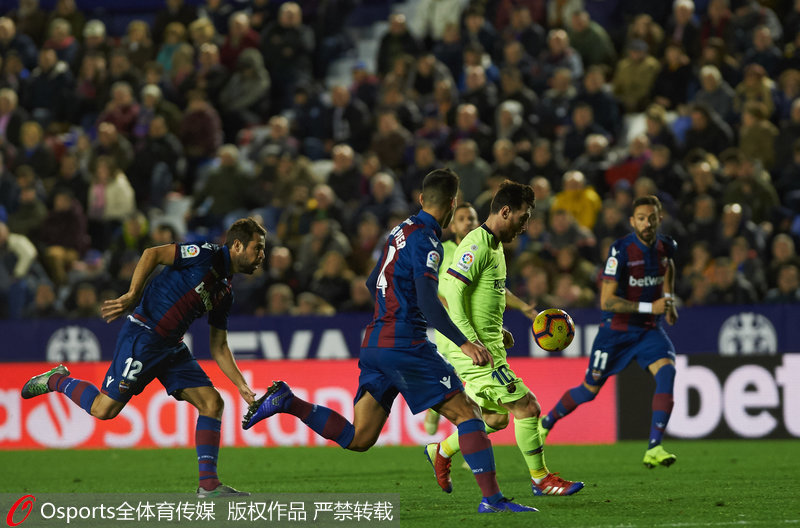 人民网北京12月17日电(杨磊) 北京时间12月17日凌晨,2018/19赛季西甲第16轮继续进行,巴塞罗那客场5比0大胜莱万特,梅西助攻苏亚雷斯进球后完成帽子戏法,又助攻皮克锦上添花。巴萨联赛3连胜后仍以3分领跑。