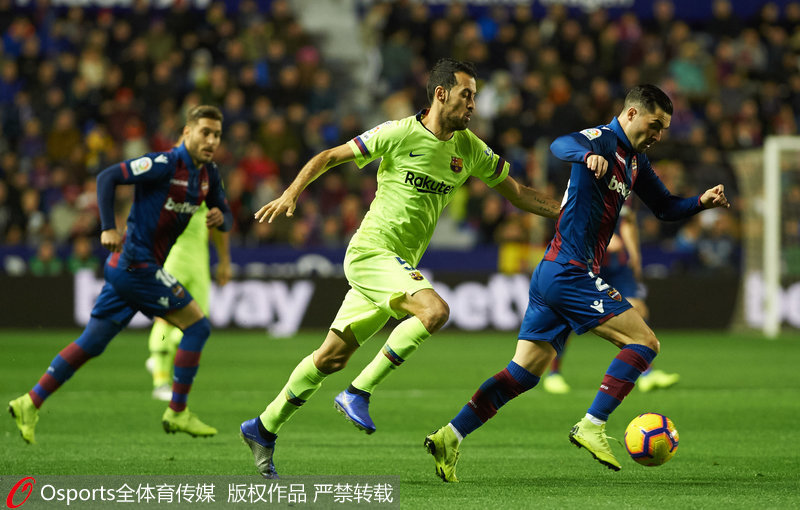 莱万特(3-5-2):13-奥拉萨巴尔;18-卡巴科,15-波斯蒂戈(70',8-普尔西奇),4-罗贝尔;23-詹森,16-罗奇纳(69',12-莫雷诺),24-坎帕尼亚,10-巴尔迪,3-托尼奥;11-莫拉莱斯,21-博阿滕(62',2-马约拉尔)