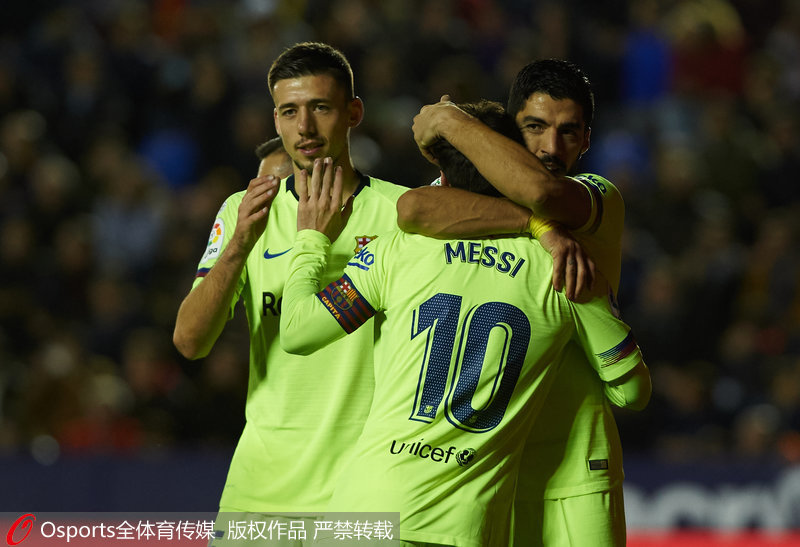人民网北京12月17日电(杨磊) 北京时间12月17日凌晨,2018/19赛季西甲第16轮继续进行,巴塞罗那客场5比0大胜莱万特,梅西助攻苏亚雷斯进球后完成帽子戏法,又助攻皮克锦上添花。巴萨联赛3连胜后仍以3分领跑。
