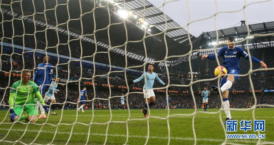 曼城队球员热苏斯(中)在比赛中庆祝进球。新华社/路透