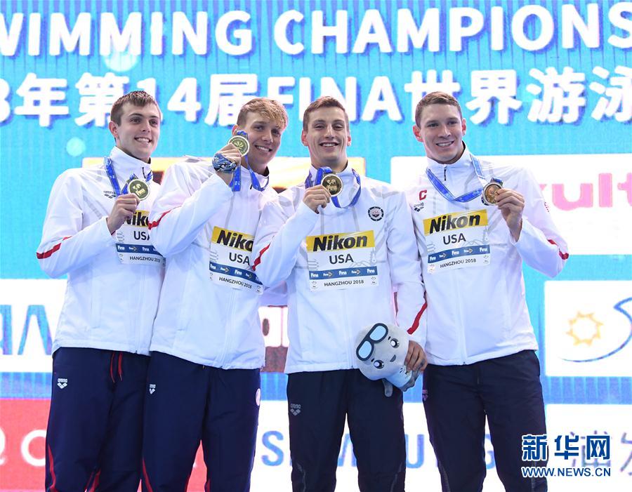 短池世锦赛:美国队获男子4X100米混合泳接力冠军