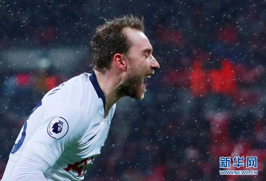 12月15日,热刺队球员埃尔克森庆祝进球。 当日,在2018-2019赛季英超联赛第17轮比赛中,托特纳姆热刺队主场以1比0战胜伯恩利队。 新华社/路透