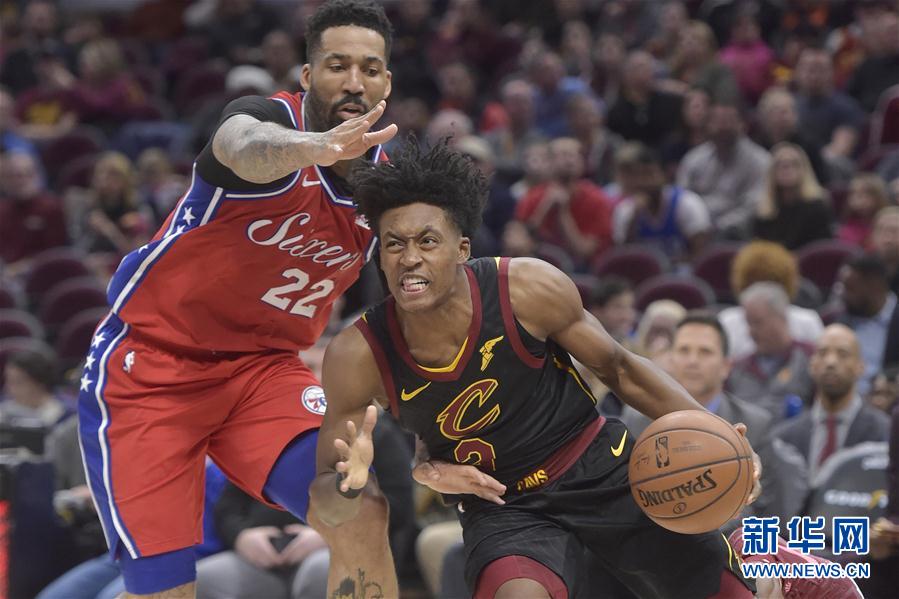 12月16日,骑士队球员塞克斯顿(右)在比赛中带球突破。 当日,在2018-2019赛季NBA常规赛中,克利夫兰骑士队主场以105比128不敌费城76人队。 新华社/路透
