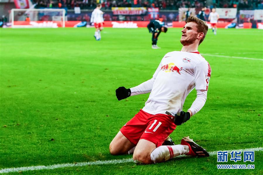 12月16日,莱比锡队球员维尔纳在比赛中庆祝得分。 当日,在2018-2019赛季德国足球甲级联赛第15轮比赛中,莱比锡队主场以4比1战胜美因茨队。 新华社发