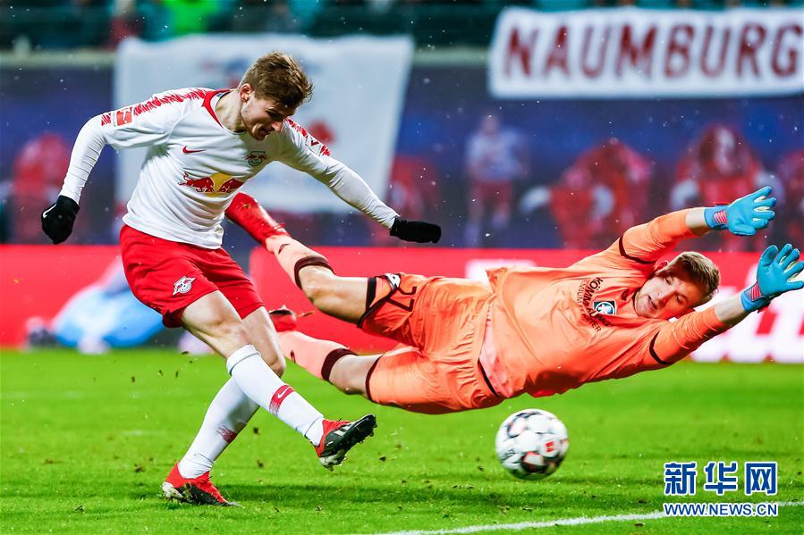 莱比锡队球员维尔纳(左)在比赛中射门。 新华社发
