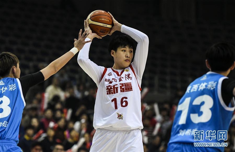 新疆体彩队球员陈明伶(中)在比赛中。 新华社记者王菲摄