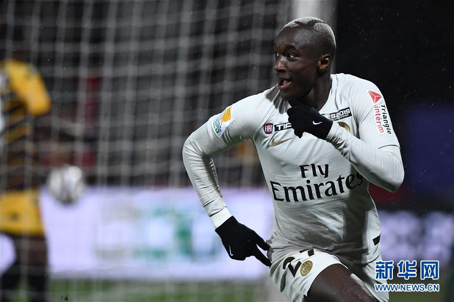 12月18日,巴黎圣日耳曼队球员迪亚比打入制胜球后庆祝。 当日,在2018-2019赛季法国联赛杯16强比赛中,法甲霸主巴黎圣日耳曼队客场以2比1战胜法乙球队奥尔良。 新华社/法新
