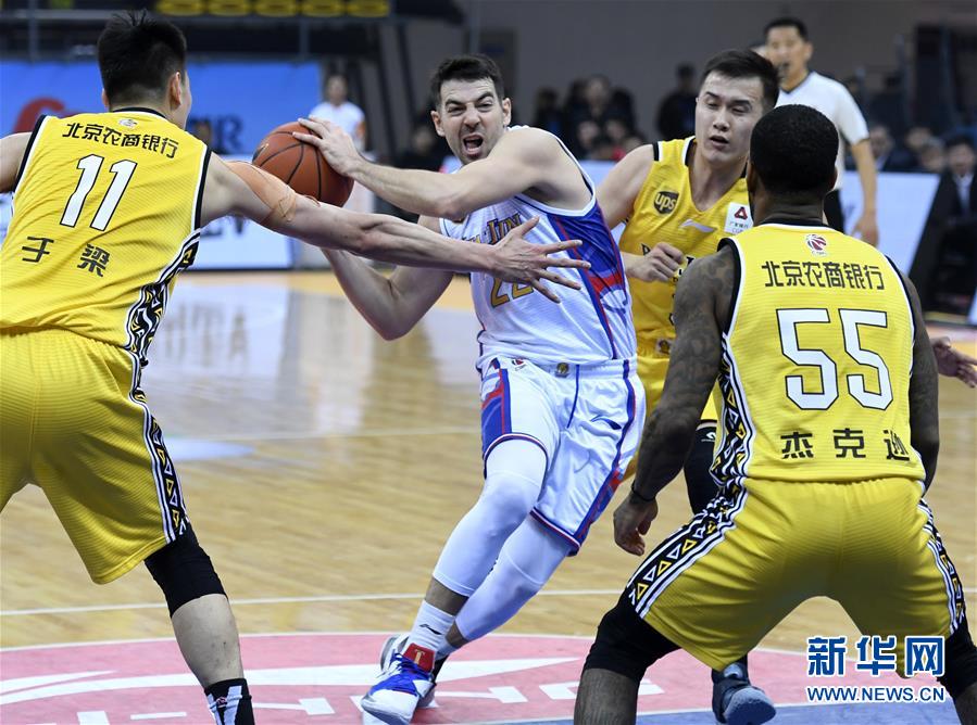 这是2018年12月12日,代表天津滨海云商金控队出战的罗切斯特(左二)在比赛中突破。 新华社记者岳月伟摄
