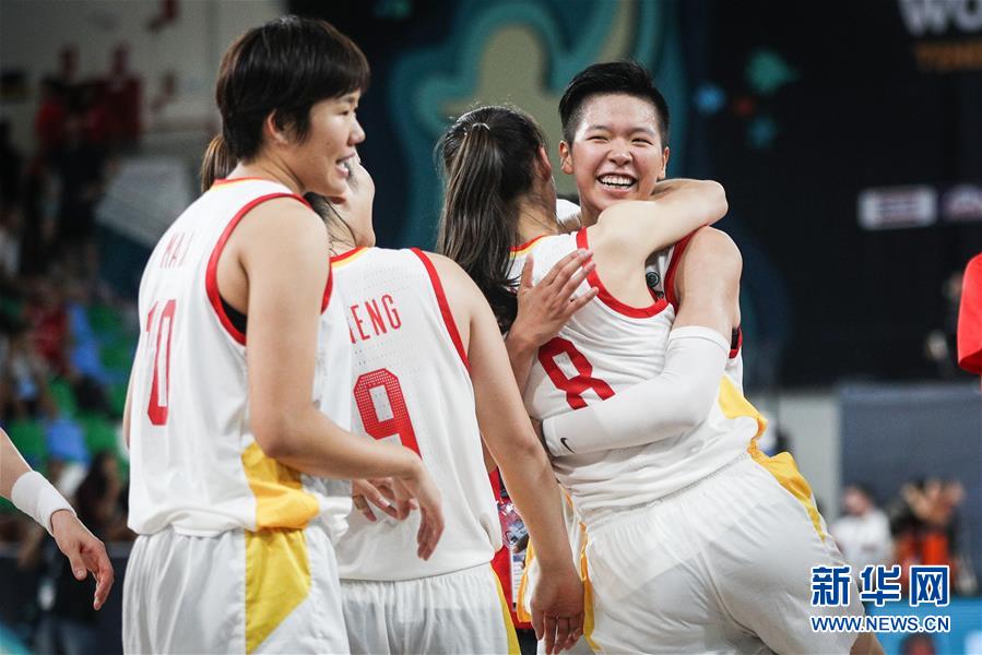 图为2018年9月26日,中国队球员黄思静(右一)与队友王雪朦在2018年国际篮联女篮世界杯交叉淘汰赛战胜日本队晋级八强后拥抱庆祝的资料照片。 新华社记者郑焕松摄