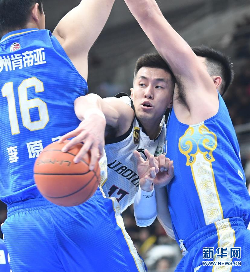 图为2018年12月9日,辽宁本钢队球员郭艾伦(中)在2018-2019赛季CBA常规赛第17轮与江苏苏州肯帝亚队的比赛中传球的资料照片。 新华社记者龙雷摄