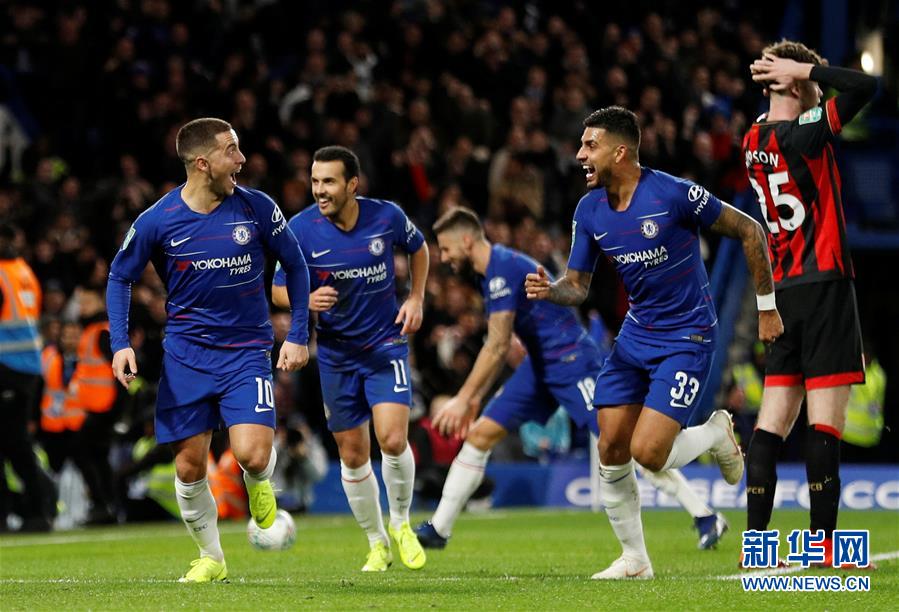 英格兰联赛杯:切尔西淘汰伯恩茅斯晋级四强