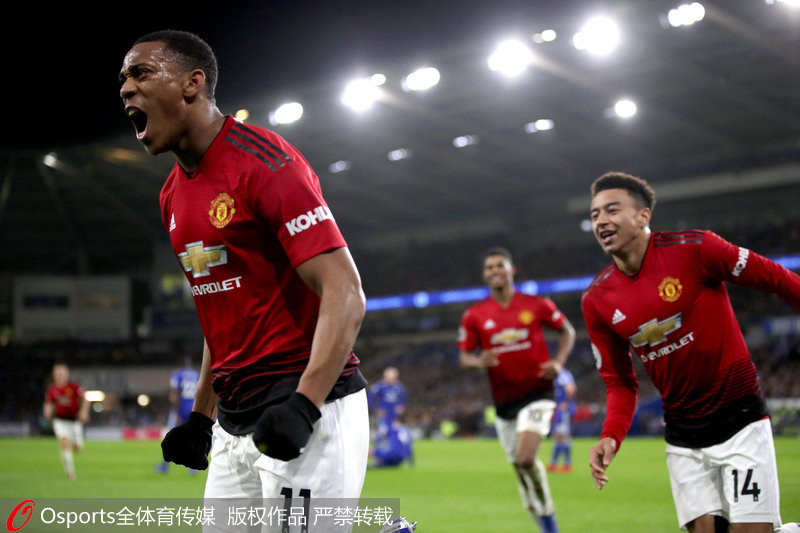第41分钟,曼联锦上添花!马夏尔右路带球进攻并迅速前插,球经多脚传递后由林加德前做,马夏尔拿球轻松推射破门!曼联3-1!