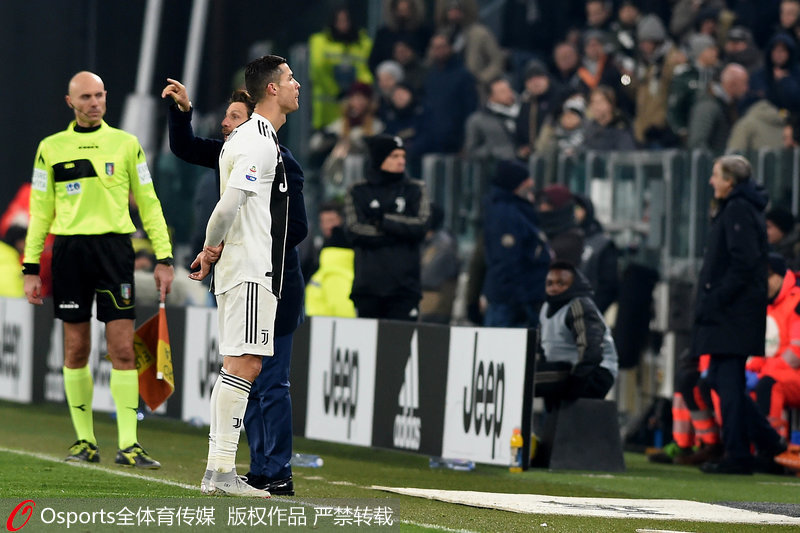 下半场补时阶段,C罗右路踩单车杀入禁区,晃开防守后下底传中,替补登场的道格拉斯-科斯塔将球捅进,但裁判观看VAR后认为马图伊迪犯规在先,进球无效。
