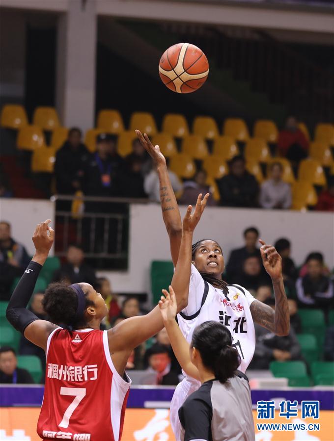 12月22日,河北英励队球员杰西卡·布兰雷(右)在比赛中争球。 当日,在2018-2019赛季中国女子篮球联赛(WCBA)第24轮比赛中,河北英励队主场以77比56战胜浙江稠州银行队。 新华社记者朱旭东摄