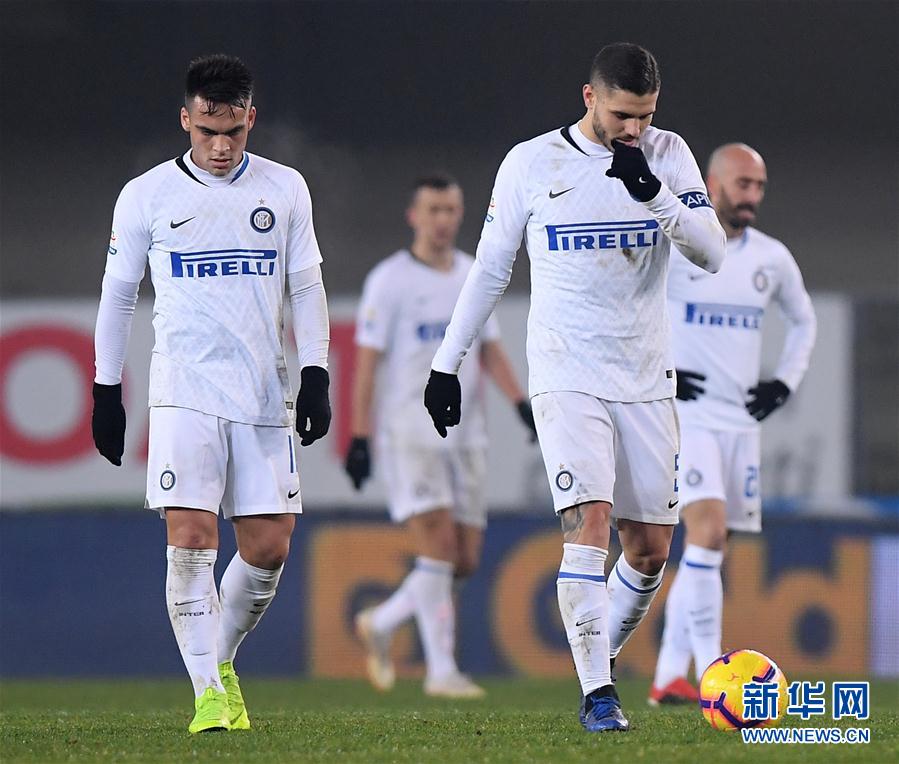12月22日,国际米兰队球员在比赛后离场。 当日,在2018-2019赛季意大利足球甲级联赛第17轮比赛中,切沃队主场以1比1战平国际米兰队。 新华社发(阿尔贝托·林格里亚摄)