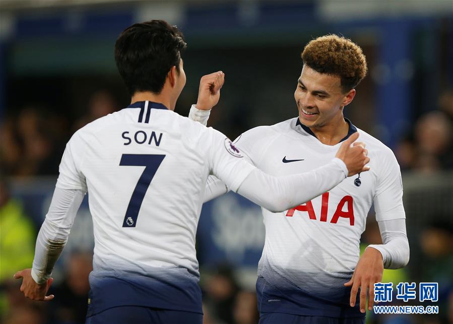 热刺队球员阿里(右)与孙兴民在比赛中庆祝进球。 新华社/路透