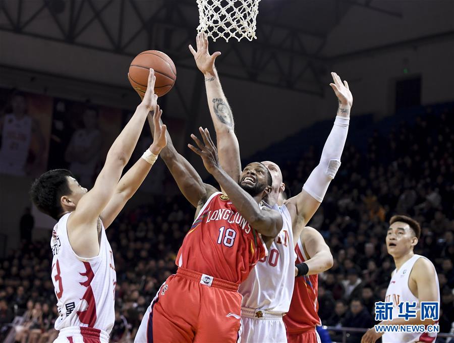 12月23日,时代中国广州队球员弗格(左二)在比赛中上篮。 当日,在2018-2019赛季中国男子篮球职业联赛(CBA)常规赛第23轮比赛中,吉林九台农商银行队主场以121比95战胜时代中国广州队。 新华社记者许畅摄