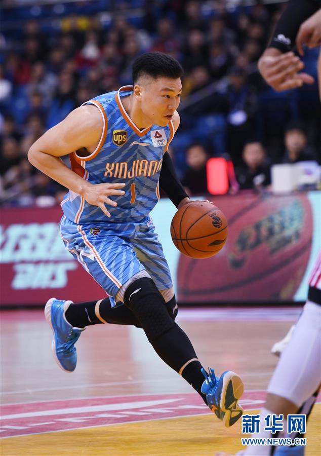 新疆广汇汽车队球员李根在比赛中带球突破。新华社记者李紫恒摄