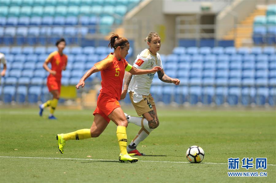 12月23日,中国队队长吴海燕(前左)在比赛中与对手拼抢。 当日,正在澳大利亚进行冬训的中国女足在练习赛中以5比0战胜澳女超球队纽卡斯尔喷气机,迎来本次集训练习赛五连胜。 新华社发