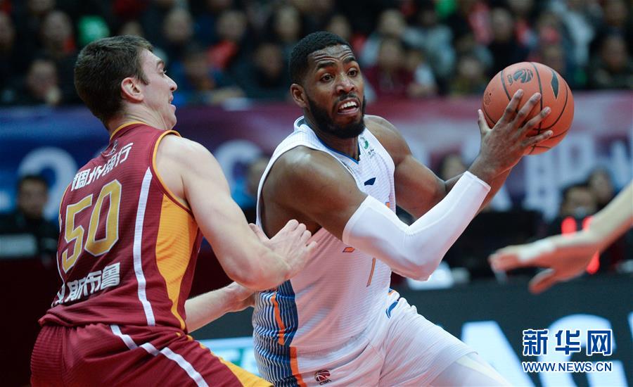 12月23日,四川五粮金樽队球员汤普森(右)在比赛中进攻。 当日,在2018-2019赛季中国男子篮球职业联赛(CBA)常规赛第23轮比赛中,四川五粮金樽队主场以97比80战胜浙江稠州银行队。 新华社发