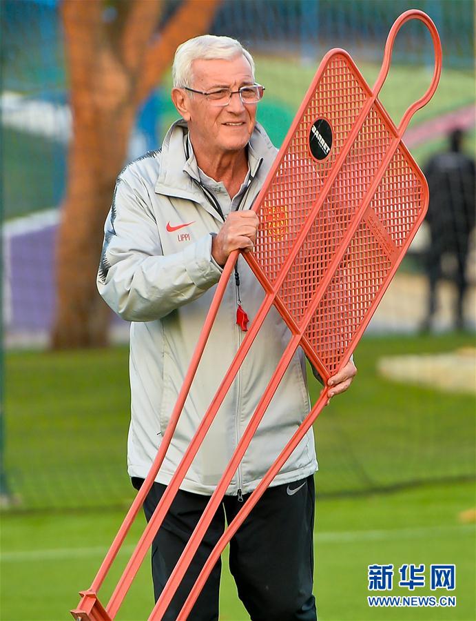 12月23日,中国队主教练里皮在训练中。 当日,中国国家男子足球队继续在卡塔尔首都多哈的阿斯拜尔体育中心训练,备战2019年1月在阿联酋举办的亚洲杯。 新华社发(尼库摄)