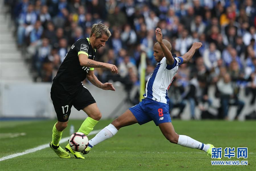 波尔图队球员卜拉希米(右)与里奥阿维队球员科恩特朗在比赛中拼抢。新华社发