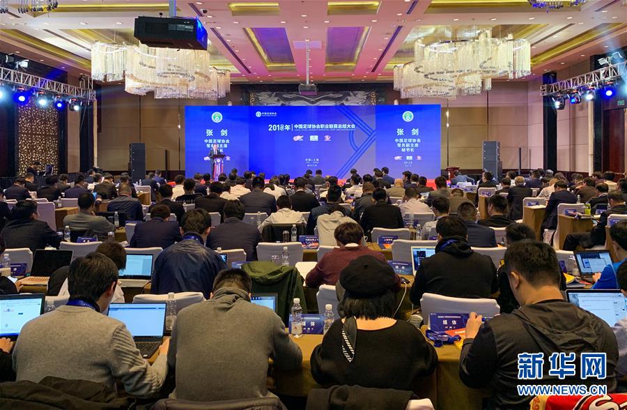 12月20日,2018年中国足球协会职业联赛总结大会在上海举行,会上公布了“工资帽”等新政细则,足协还将推动职业联盟在2019年挂牌成立。 这是会议现场(12月20日摄)。 新华社记者丁汀摄