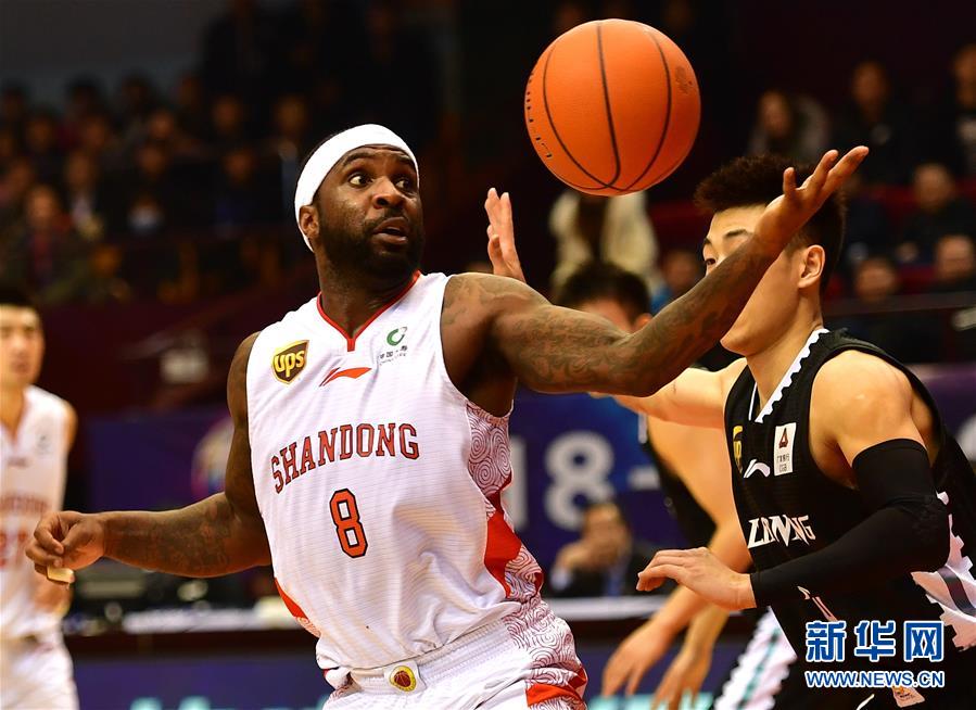 山东西王队球员劳森(左)在比赛中争球。 新华社记者朱峥摄