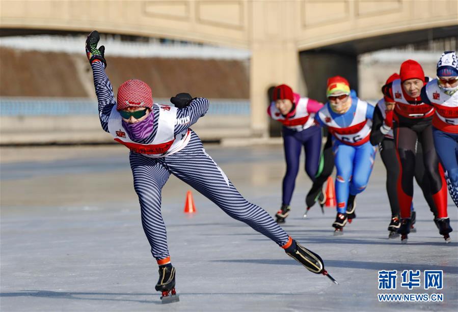 参赛选手在全国大众速度滑冰马拉松女子组6公里比赛中。 新华社发