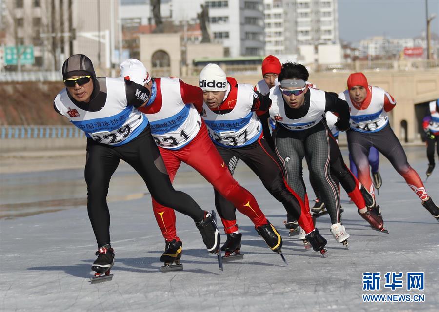 参赛选手在全国大众速度滑冰马拉松男子组10公里比赛中。 新华社发